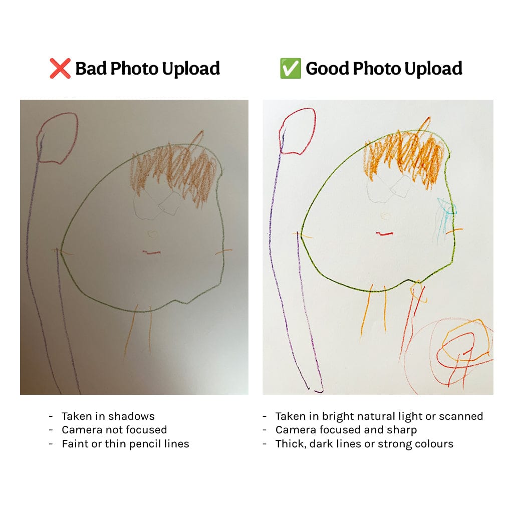 • Ideally a scan of the drawing works best but if a scanner is not available to you a well-lit photograph of the drawing taken from above will work well.