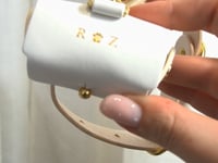 Guarantee a moment to remember by popping the question with your pet by your side: our engagement ring pouches for dogs make the perfect pet proposal idea. A unique alternative to a traditional jeweller’s ring box, our dog proposal pouches feature a brass clasp on the back so it can be securely attached to your dog’s collar or harness, ready for the big moment. The pouches are available in black, white, tan or blush pink and the inside of each pouch is designed to snuggly hold the engagement ring between the leather folds.