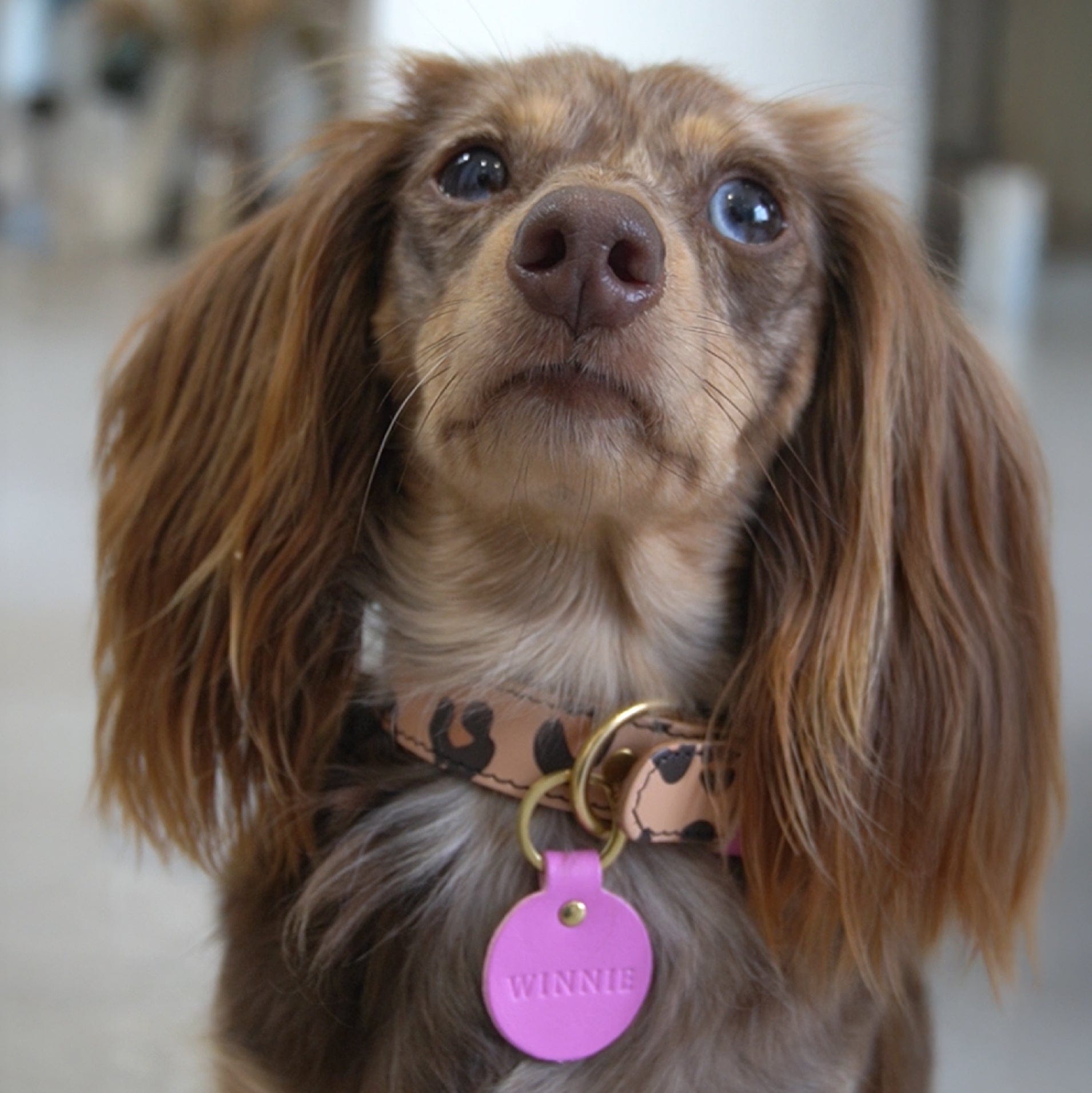 Handmade from sustainably sourced, premium quality British leather and made in the UK, at our studio in the New Forest to be exact. Choose from a range of bright colours, soft pastels or classic neutrals. Each tag is supplied with a solid brass split ring (fancy) and can be stamped with your pet’s name in traditionally debossed letters.