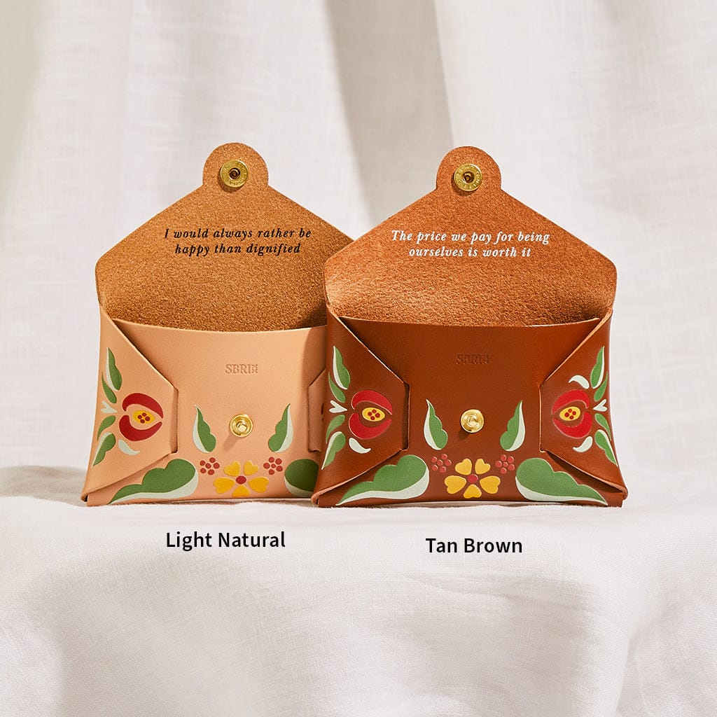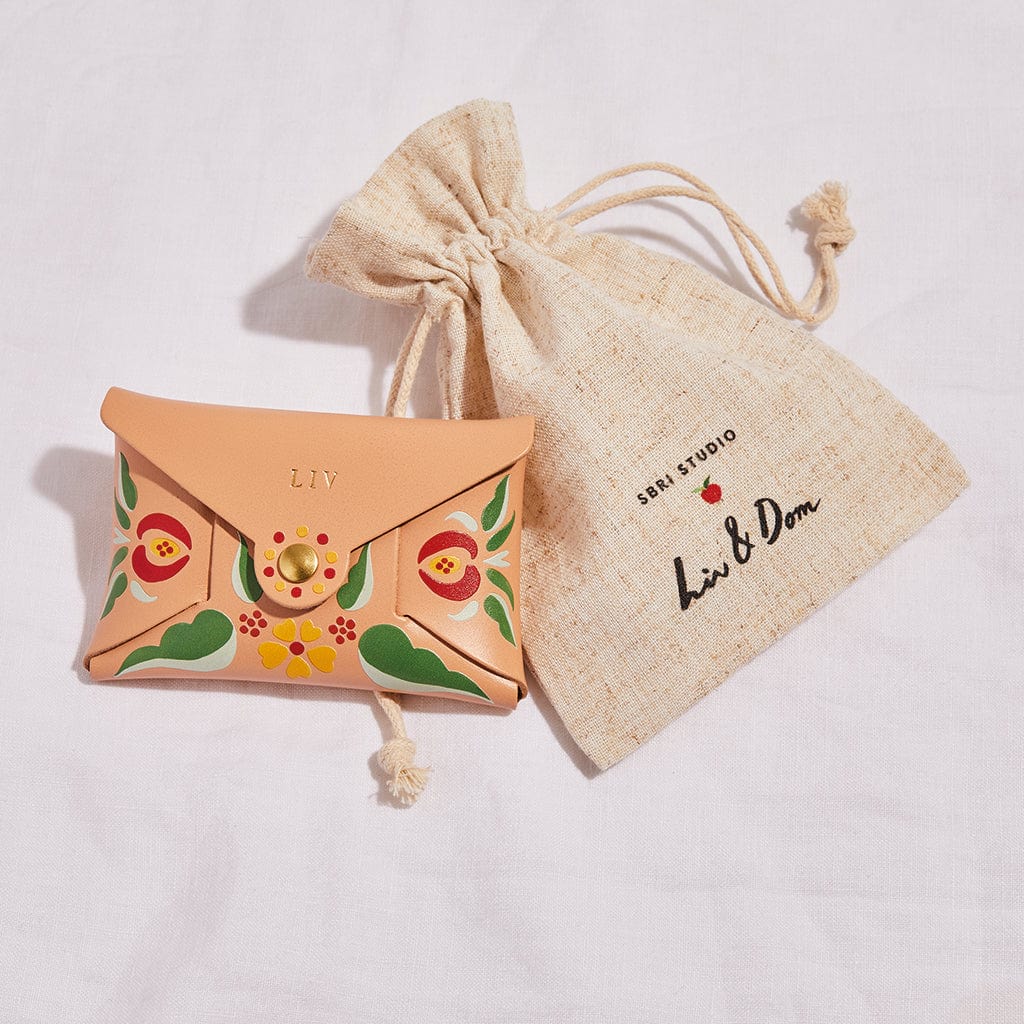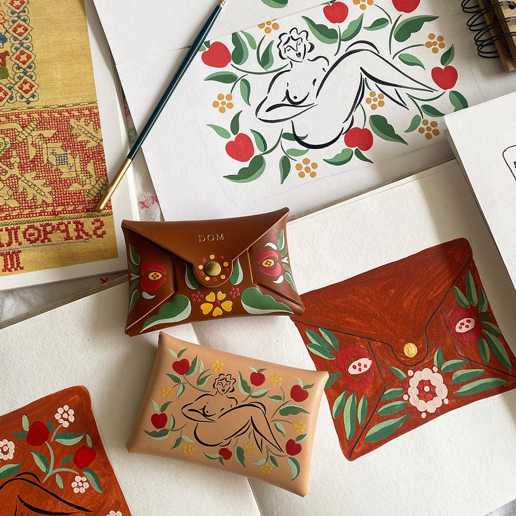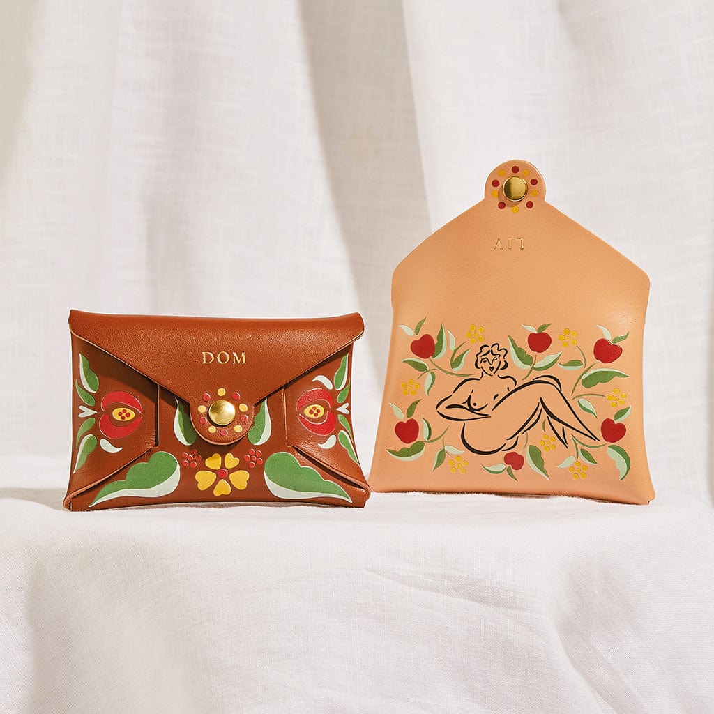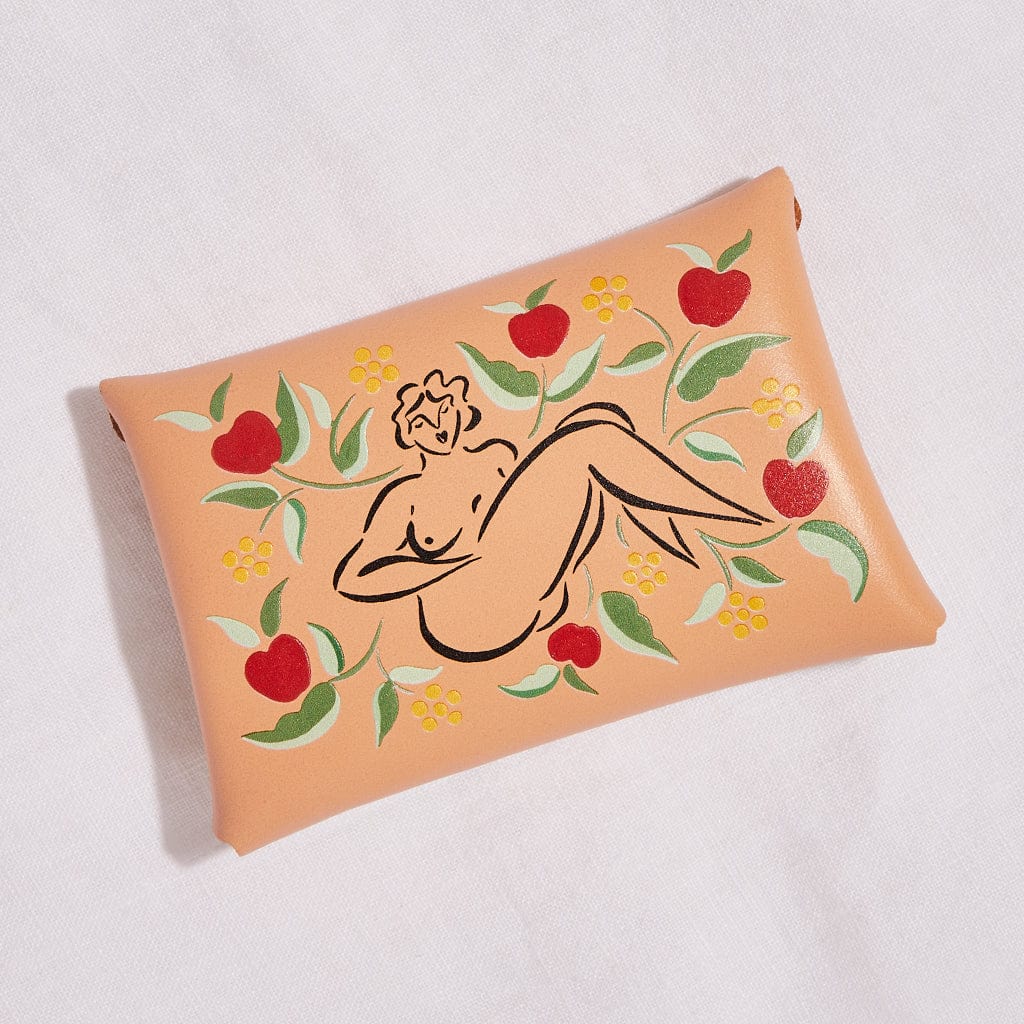 Designed exclusively for Sbri by artist duo and twin sisters Liv & Dom, this handmade leather coin purse features one of their signature nude ladies basking happily amongst folky fruits and florals. She's a joyful celebration of the female form and is the apple of our eye.