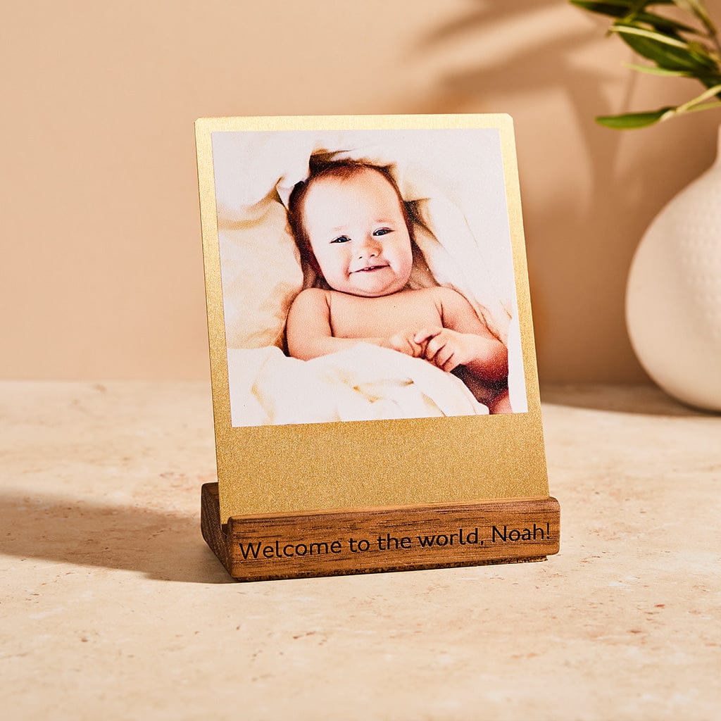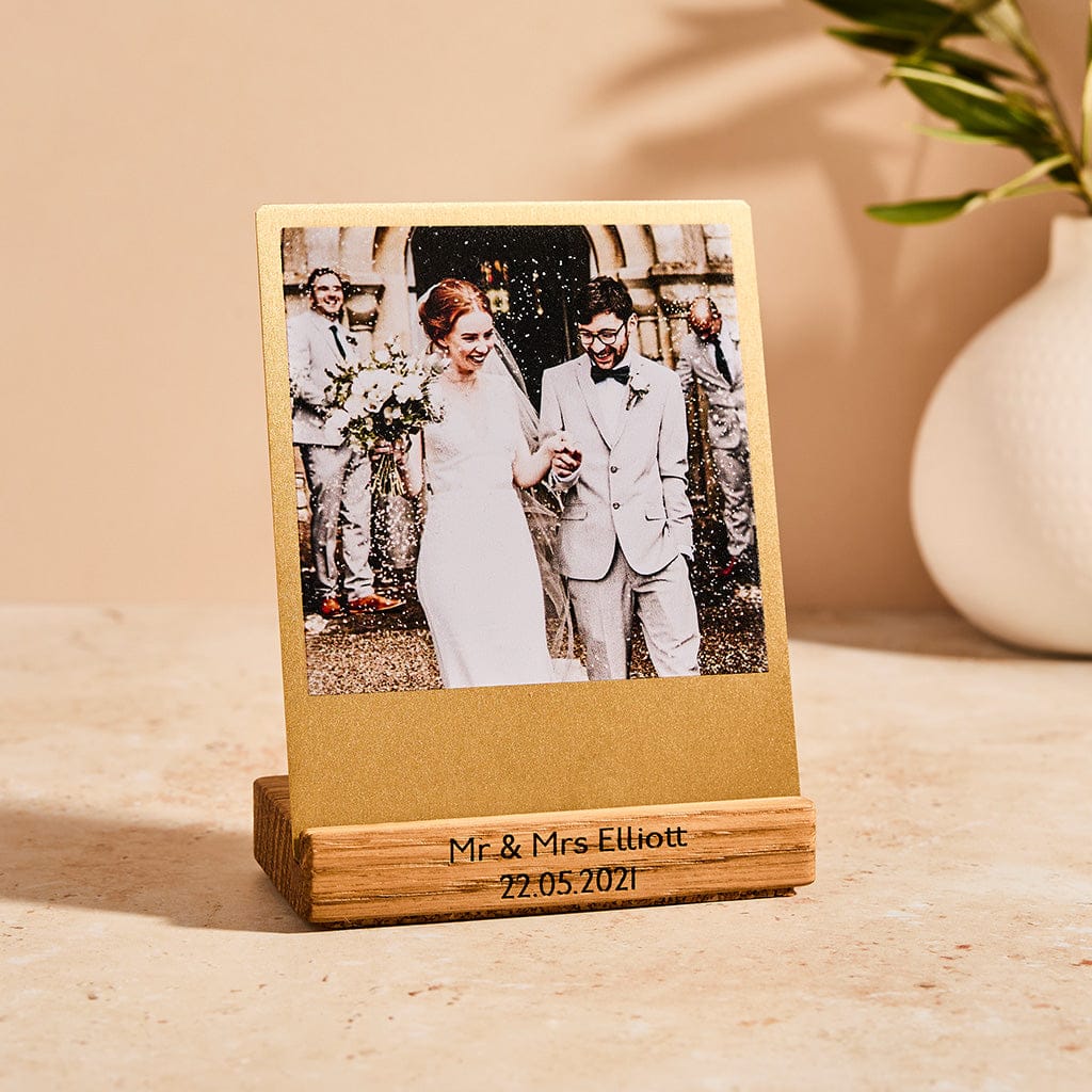 The photo is printed directly onto the brass plate which is lacquered to prevent tarnishing. This sits neatly in the groove of the wood block offering longevity and premium style for displaying treasured memories. You have the choice between a solid walnut block, which is rich in tone, or the warmer solid oak option.