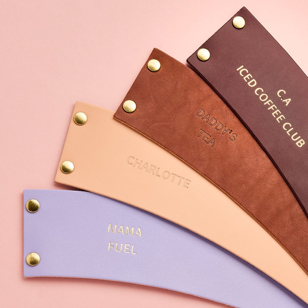 The cup sleeves are available in four colourways: burgundy or lilac with gold foil personalisation, and tan brown or light natural with blind debossed personalisation. You can personalise each sleeve with up to three lines of text (20 characters per line), making it completely your own – perfect as a gift for Mother’s Day, birthdays, or the office Secret Santa at Christmas.