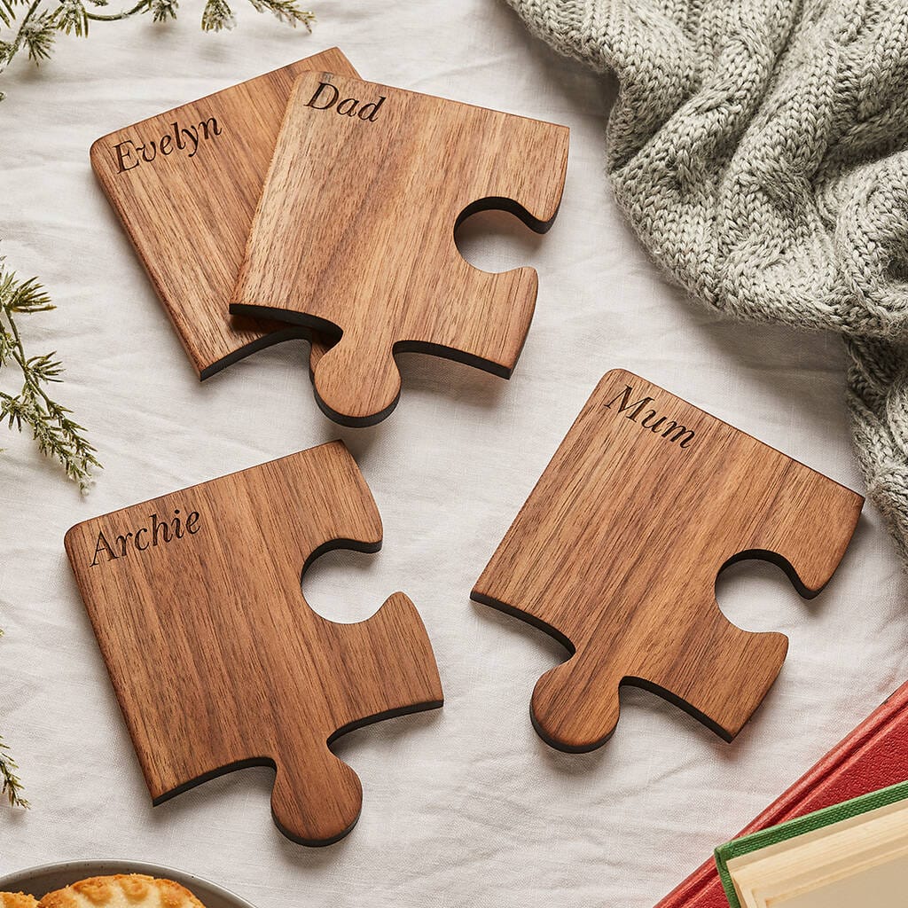 Bring some fun to your table top with these wonderful wood jigsaw coasters. The jigsaw coasters fit together beautifully and create a great talking point in any home.