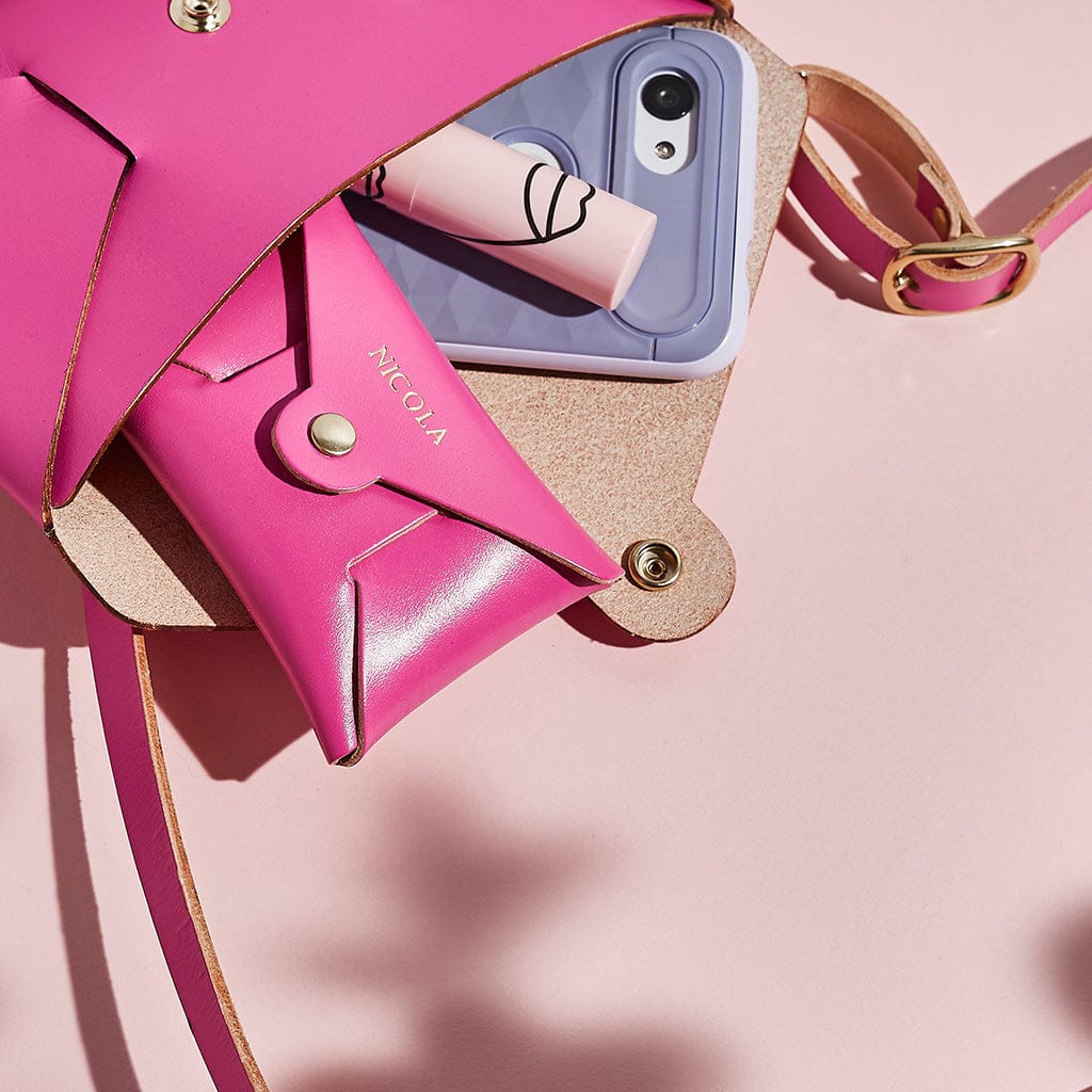 Handmade from sustainably sourced, premium quality fuchsia pink leather and made in the UK, in our studio in the New Forest to be exact. A clever origami design that’s seamless with no need for stitching, held tight by a secure popper to keep your coins safe. Room for up to 5 credit cards as well – our coin purses are little but they hold a lot. Ideal for stashing car park change or as an alternative card holder.