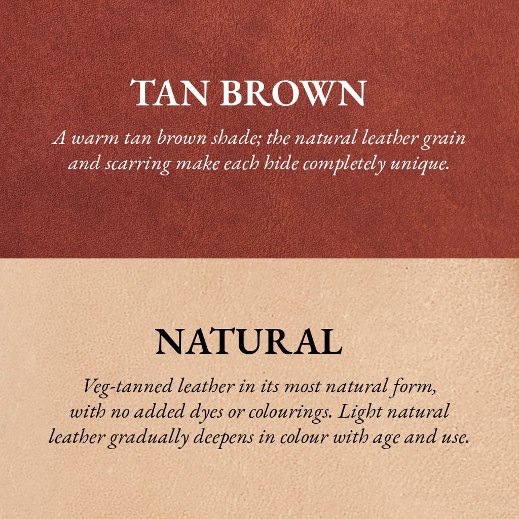 Made from sustainably sourced British cowhide leather and solid brass fixings.
