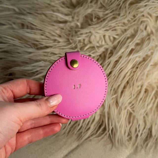 Handmade from sustainably sourced, premium quality British leather and made in the UK, in our New Forest studio to be exact. Cut, stitched and finished by hand, then stamped with your name or initials in gorgeous gold foil. The leather case is secured with a solid brass button which pops open to reveal the round pocket mirror and contrasting leather lining. Choose from bright fuchsia and orange, soft mint and blush, bold black and leopard or pretty lilac and floral - the choice is yours.