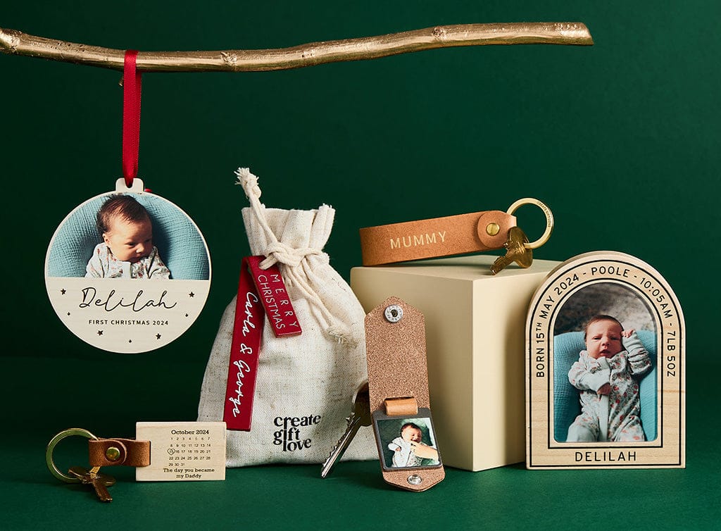 Celebrate your new arrival's first Christmas with personalised keepsakes to mark this festive milestone, including personalised photo gifts, Christmas present ideas for new parents, and keepsake tree decorations to treasure year after year.